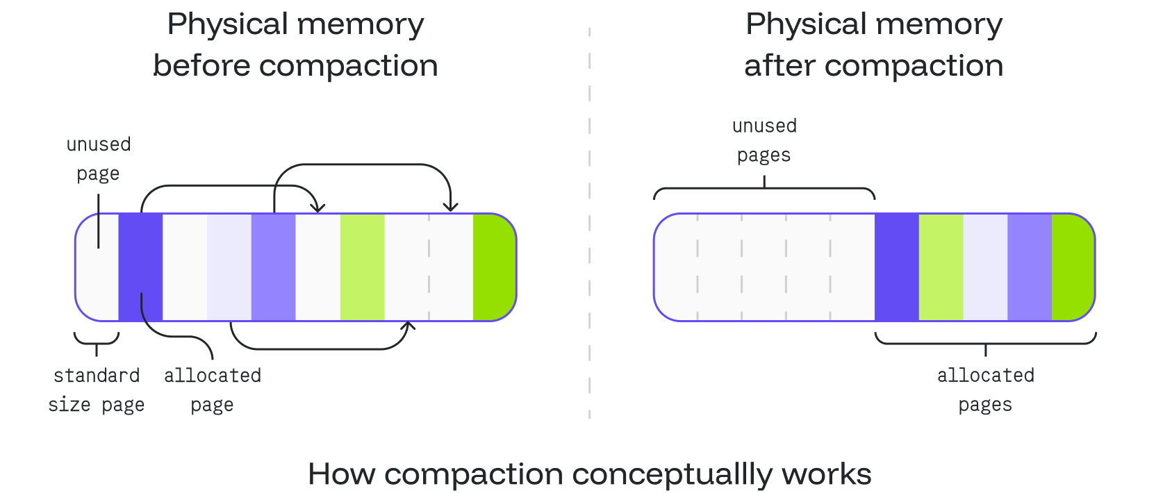 Demotion means converting huge pages back into pages of standard size. This possibility was necessary in the past, as many parts of the existing Linux kernel’s code could operate on only pages of standard size. Nowadays, the number of scenarios when demotion is required is decreasing, which makes sense from the performance perspective. We want to pay some extra cost at the beginning and use huge pages instead of paying extra cost twice and using pages of standard size in the end.