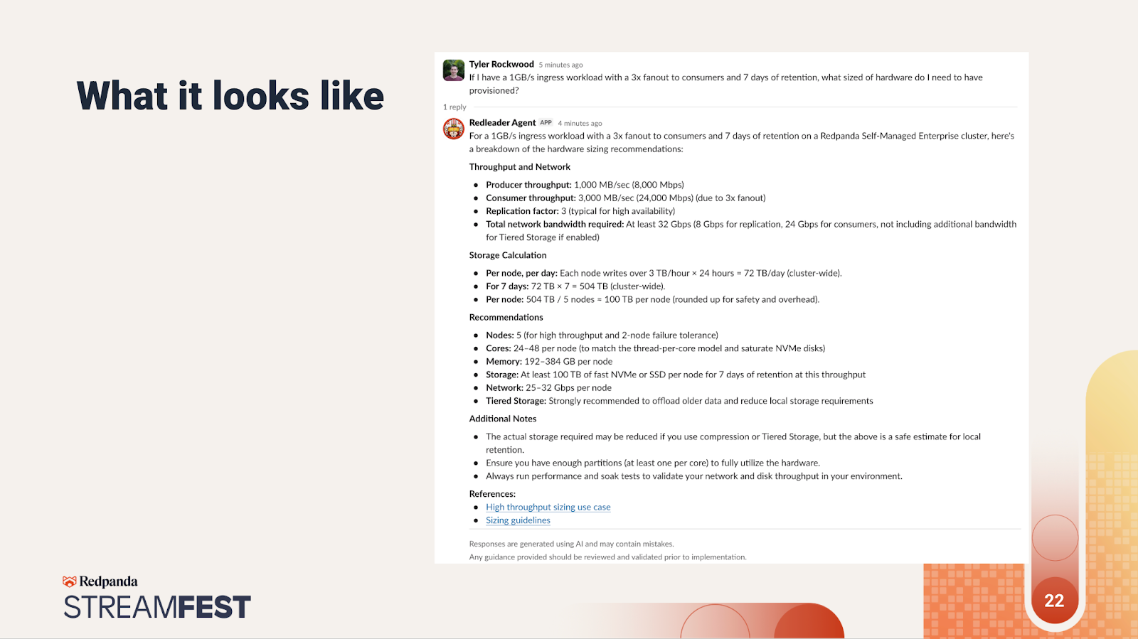It’s always nice to see a company actually using its own technology in production. To showcase how we’re using AI agents internally, the ever-friendly Tyler Rockwood introduced everyone to Redleader, an AI agent that mainly works within our Slack.