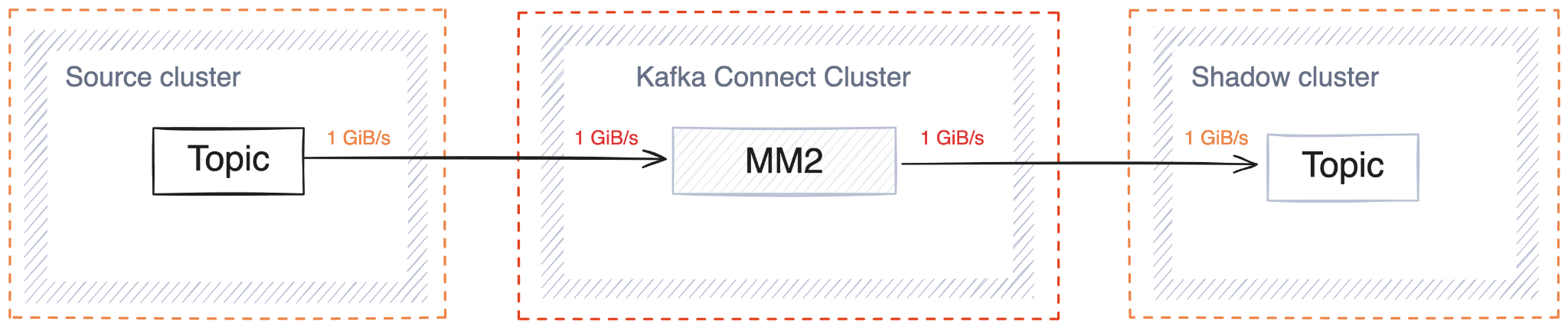 Shadow Links also have the benefit of efficient infrastructure. Consider replicating a stream of messages at 1GiB/s using an external tool such as MirrorMaker: